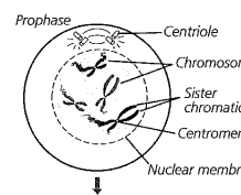 Prophase-Nuclear membrane starts to break down, the chromosomes begin to get smaller because the DNA molecules coil up